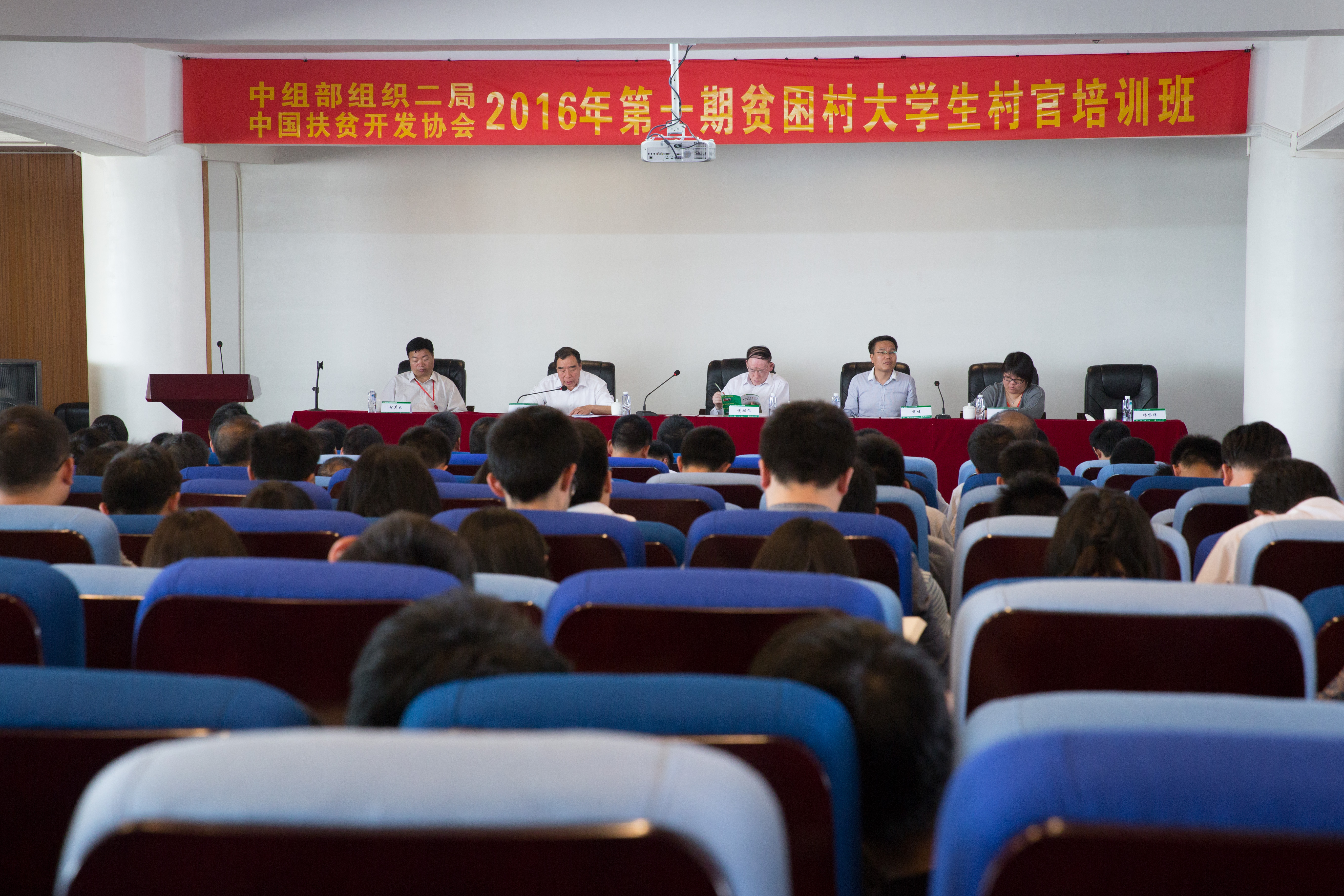 主席台 大学生村官学员 为做好贫困村脱贫攻坚工作,帮助大学生村官在脱贫攻坚中更好地发挥作用,4月18日上午,由中共中央组织部组织二局、中国扶贫开发协会联合举办的2016年第一期贫困村大学生村...