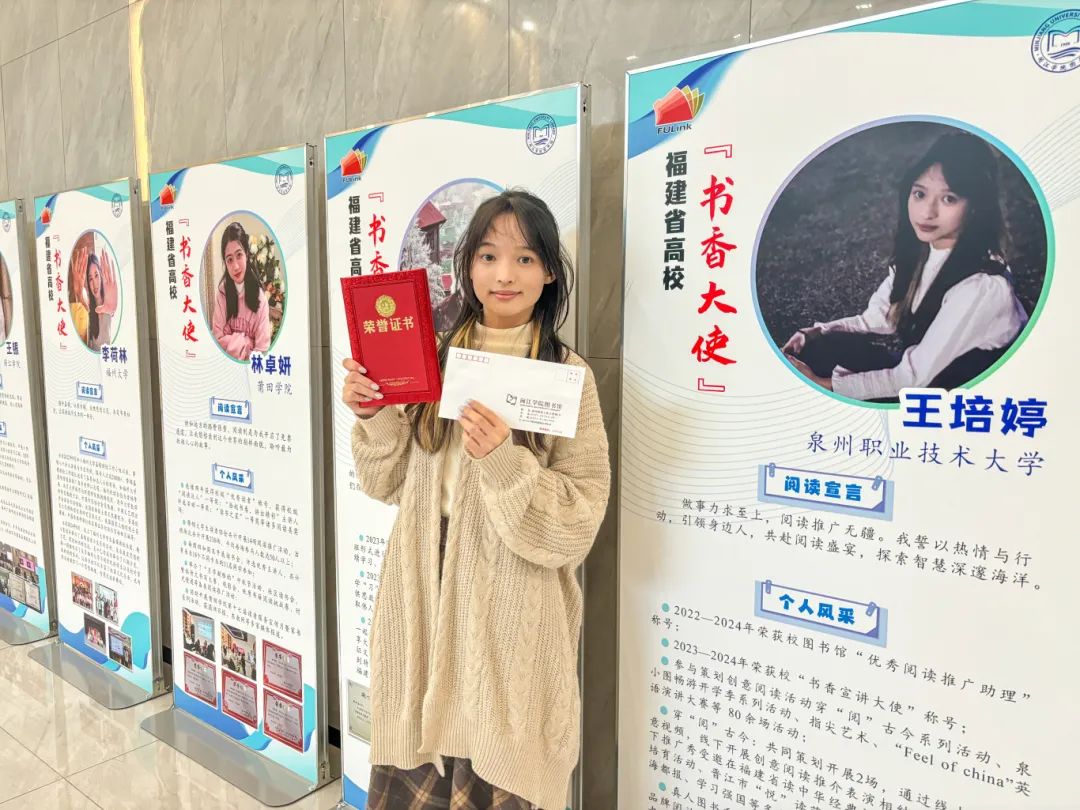 “世人皆失我独得,春风浩浩诗书香。”宋朝诗人陈著的诗句令人对“书香”深深向往。校园里,最美的景致就是那幽幽的书香。11月22日,在“阅读润初心·青春展风采”福建省高校“书香大使”评选中,我校2022级信息安全与管理专业2班的王培婷,经过激烈的初评选拔和复赛展演,从全省24所本科院校、10所高职院校选送的86名参赛选手中脱颖而出,成为本科组12名“书香大使”中的翘楚。王培婷同学淡雅清瘦,一身书卷气。无论在教室、宿...