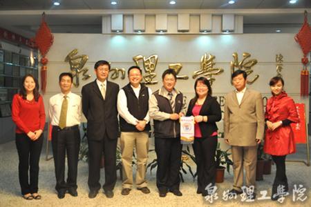 泉州理工学院领导与台湾首府大学客人合影 我校商贸系副主任王耕将“泉州理工职业学院校企共建单位”牌匾赠送帝宝花园酒店 日前,台湾首府大学来闽与泉州理工学院及帝宝花园酒店商定落实三方校校企...