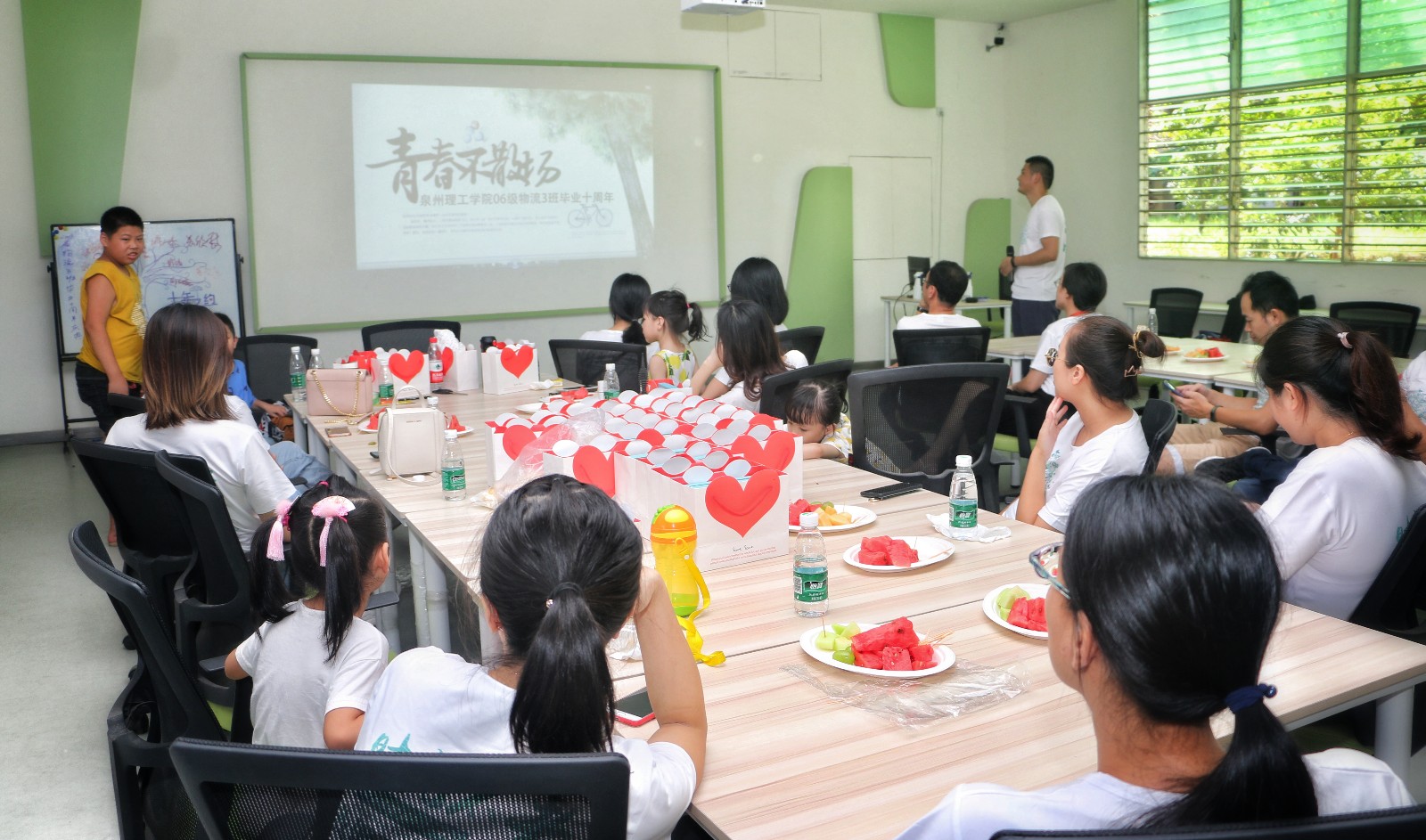 09届物流三班十周年的班会,他们请来了当年的班主任(现任我校图书馆馆长郑春梅老师)与辅导员(教职工校友苏欣慰老师)。