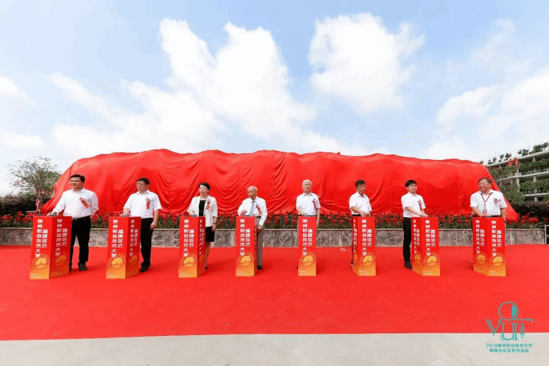 中国高等教育学科奠基人潘懋元教授、中国工程院胡永康院士、福建省教育厅发展规划处林海峰处长、泉州市人民政府周真平副市长、泉州市教育局黄世界局长、晋江市人民政府张文贤市长、吴金营董事长、臧树良校长为学校揭牌。