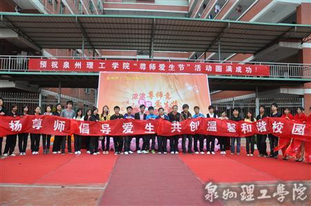 仪式最后,在“弘扬尊师,倡导爱生,共创温馨和谐校园”签名活动上,学院领导和全体师生在横幅上签名,表达了对弘扬“尊师爱生”这一传统美德的美好心愿和执着信念。
