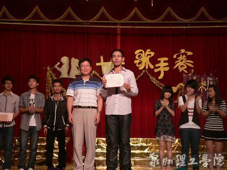 场上选手深情演唱,场下的拉拉队激情呐喊,同学们都以自己的方式给选手加油鼓劲。整场比赛气氛热烈、欢呼阵阵,尤其是当财经系 10营销班陈翔演唱时全场一片沸腾,把比赛推向高潮。最后,来自车辆系10级车运班的林润泽(红歌会冠军)凭借别具一格的唱功赢得了评委老师的一致好评,以一曲《永远》夺得本届十佳桂冠。