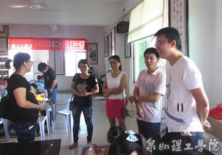 8 月7日至8日两天,校团委书记蔡金佩、副书记罗敏与晋江致和社工事务所郭艳副主任一同走访内坑镇湖内村、磁灶镇东山村、紫帽镇紫星村、东石镇第二社区、龙湖镇烧灰村、金井镇青少年宫、岱峰小学的晋江市青少年服务中心基层工作站和优兰发实业、富贵鸟公司和华联公司,看望开展实践活动的志愿者。每到一个点都详细地向村/社区团支部书记和青少年事务专职社工询问学生实践情况,了解学生吃、住和配合工作完成情况,并帮助解决学生们遇到的问题。当地负责人都对我校志愿者牺牲暑期时间,顶着酷暑开展青少年帮扶、教育、管理工作表示感谢和肯定,校团委也借此机会详细介绍了学校的基本概况及目前与晋江校地共建实施的情况,各地负责人都希望能找到切入点与我校长期合作交流。