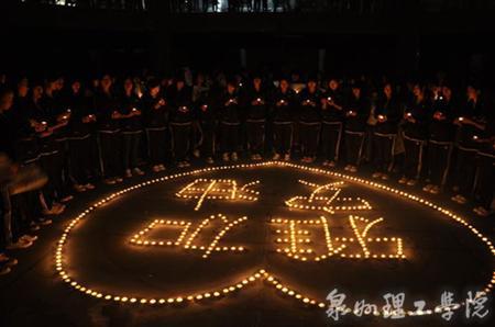 4月20日,对于全国人民来说是一个难忘的日子。早上8点02分,四川雅安发生7.0级地震。灾难的发生牵动着亿万中国人民的心,同样也时时牵动着泉州理工学院师生们的心。天灾无情,人有情,晚上20时,师生们陆续前往食堂,环绕食堂1-4层有序站立。在地下一层,师生们用手中的蜡烛在地上围成了一个大大的“心”形图案,中间拼成“雅安加油”字样,为远在千里之外的雅安同胞们加油鼓劲。低沉感人的地震纪实片瞬间拉近全场师生的距离,拉近师生们与雅安同胞间的距离。师生们手托蜡烛,目视烛光,为地震中罹难的同胞默哀一分钟。庄严肃穆的默哀,闪闪的烛光,师生们满怀真情,用蜡烛点亮去往天堂的路,祝愿地震中遇难的雅安人民一路走好!