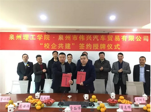2017年12月21日,我校校长臧树良、党委书记林其天、副校长庄文瑞、工学院党总支书记吴茶水等一行6人前往伟兴汽车贸易有限公司考察并进行签约,伟兴汽车贸易有限公司余孙伟、潘志辉、周世炜三位创始投资人带领骨干员工对我校党政领导进行隆重的接待。
