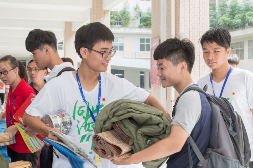 穿着统一印着“同学 汝好”(“汝”同闽南话“你”)T恤衫,挂着新生报流程表的答谢工作卡,312名迎新学生团队一大早就开始忙碌而有秩序地迎接新生。