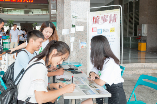 新生陈华刚到校,就被校门口宣传海报“四海八荒 只为遇见你”几个字样暖到心了,“没想到学校迎接我们这么用心,很感动,很温暖,很期待。”在报现场,她独自在所属院系完成报,而她的家长就坐在家长休息区里喝水休息。报完毕,陈华来到“温情信鸽站”,认真写着要寄出去的明信片,明信片封面是晋江五店市的闽南特色建筑。陈华表示,“感觉挺好的,很周到,很贴心,校园环境让我挺舒服的。”