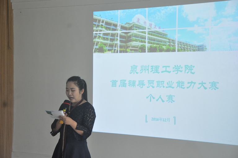 2016 12 6 日,在泉州理工学院主楼第二会议室举办了泉州理工学院首届辅导员职业能力大赛,大赛分为上下半场。早上为笔试阶段,下午为学生信息辨识环节。参加本次比赛的辅导员共有 18 位。