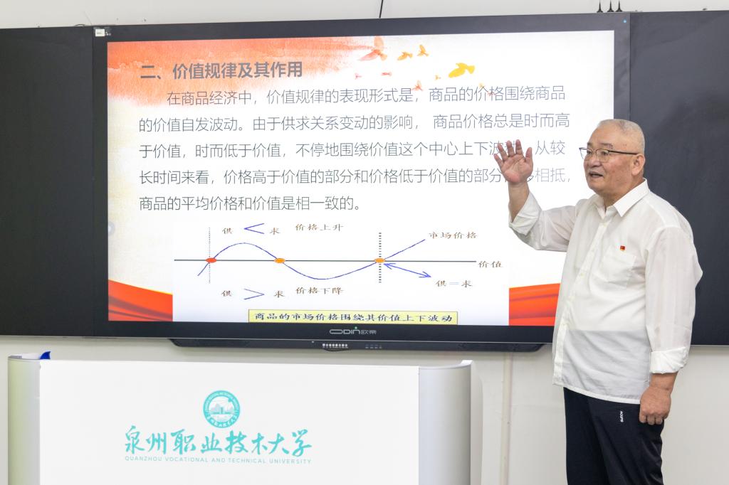 课堂上,来永宝运用马克思主义的立场、观点、方法,准确认识资本主义生产方式的内在矛盾,深刻理解资本主义经济制度的本质,正确把握社会化大生产和商品经济运动的一般规律,正确认识和把握资本主义政治制度和意识形态的本质,帮助学生理解马克思主义政治经济学的核心要义。