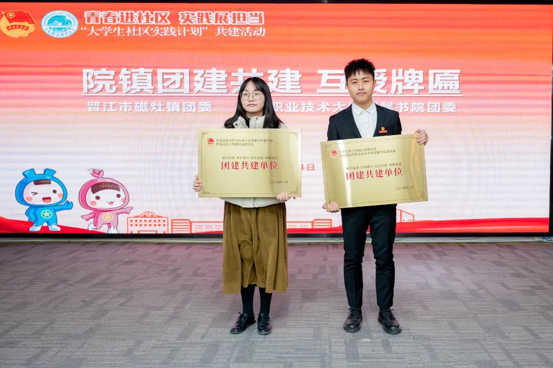 1月24日,晋江团市委与泉州职业技术大学团委联合开展“青春进社区,实践展担当”大学生社区实践计划共建活动暨首批大学生社区兼职团干聘任仪式。