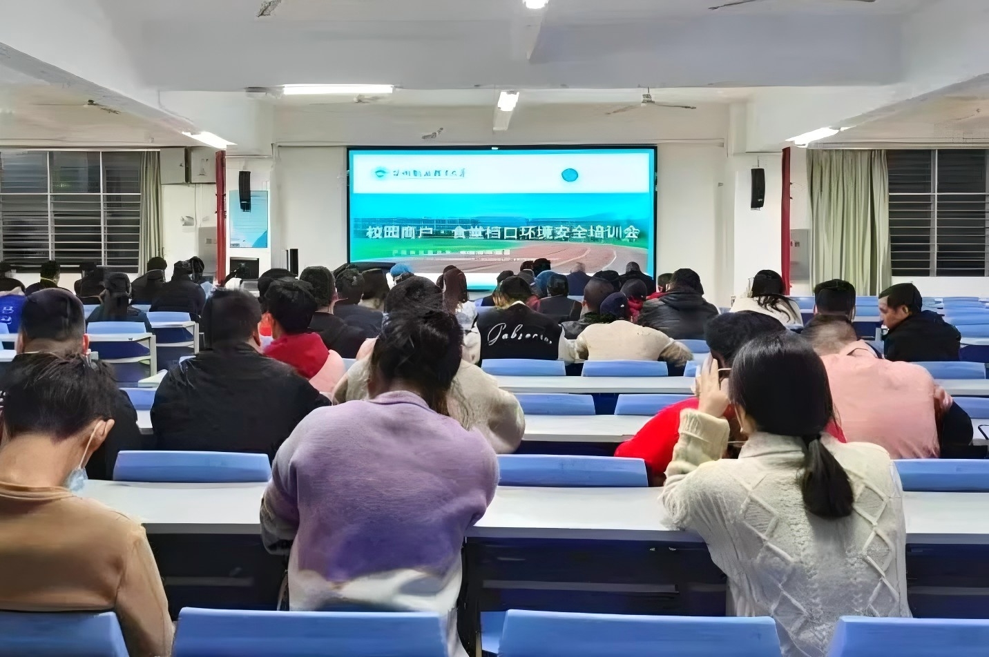 3月13日19:30,后勤保卫处组织召开校园餐饮、商业环境提升以及食品安全专题培训会,对做好相关工作进行再强调、再部署、再要求。培训会邀请专业人员对各档口人员进行灭火器使用,消防安全常识、预防火灾的基本方法,灭火器的分类和使用保管方法,以及发生火灾后如何疏散报警及灭火等进行专业培训。