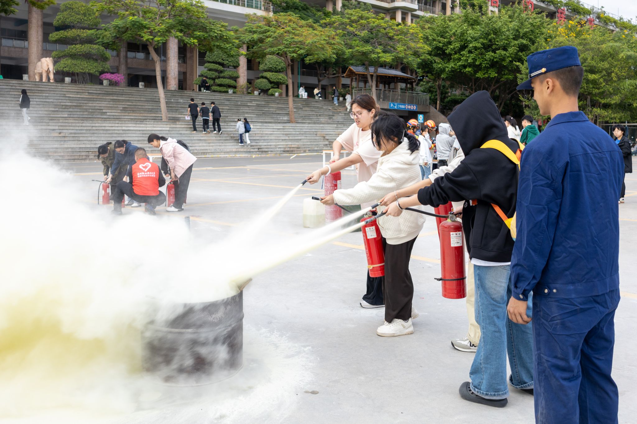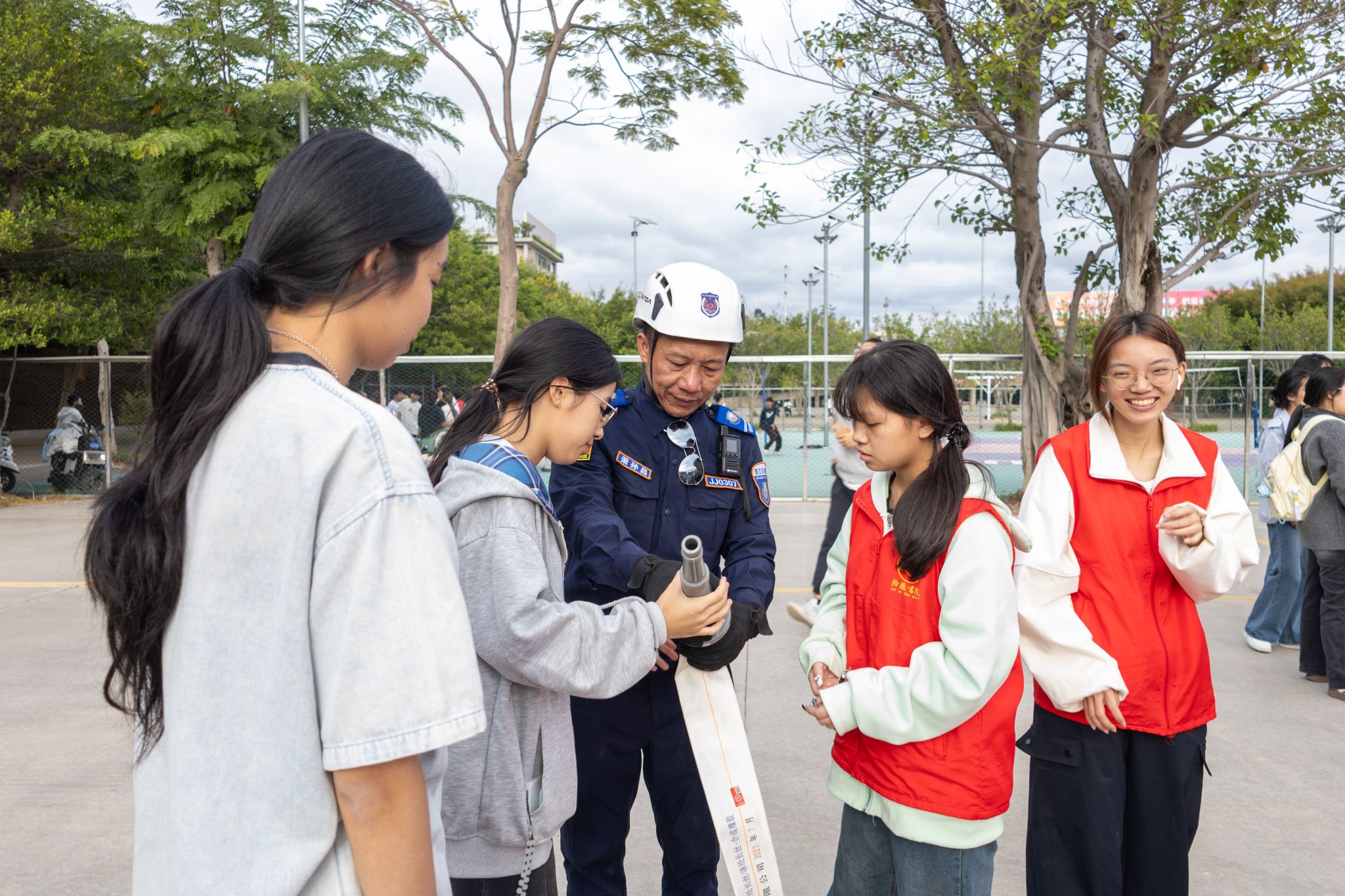 这场由拾德书院联合后勤保卫处、晋江义务救援协会和内坑镇消防救援站共同打造的“拾德同心,消防同行”主题活动,将传统的消防演练升级为一场集知识性、趣味性、体验性于一体的安全实践课。