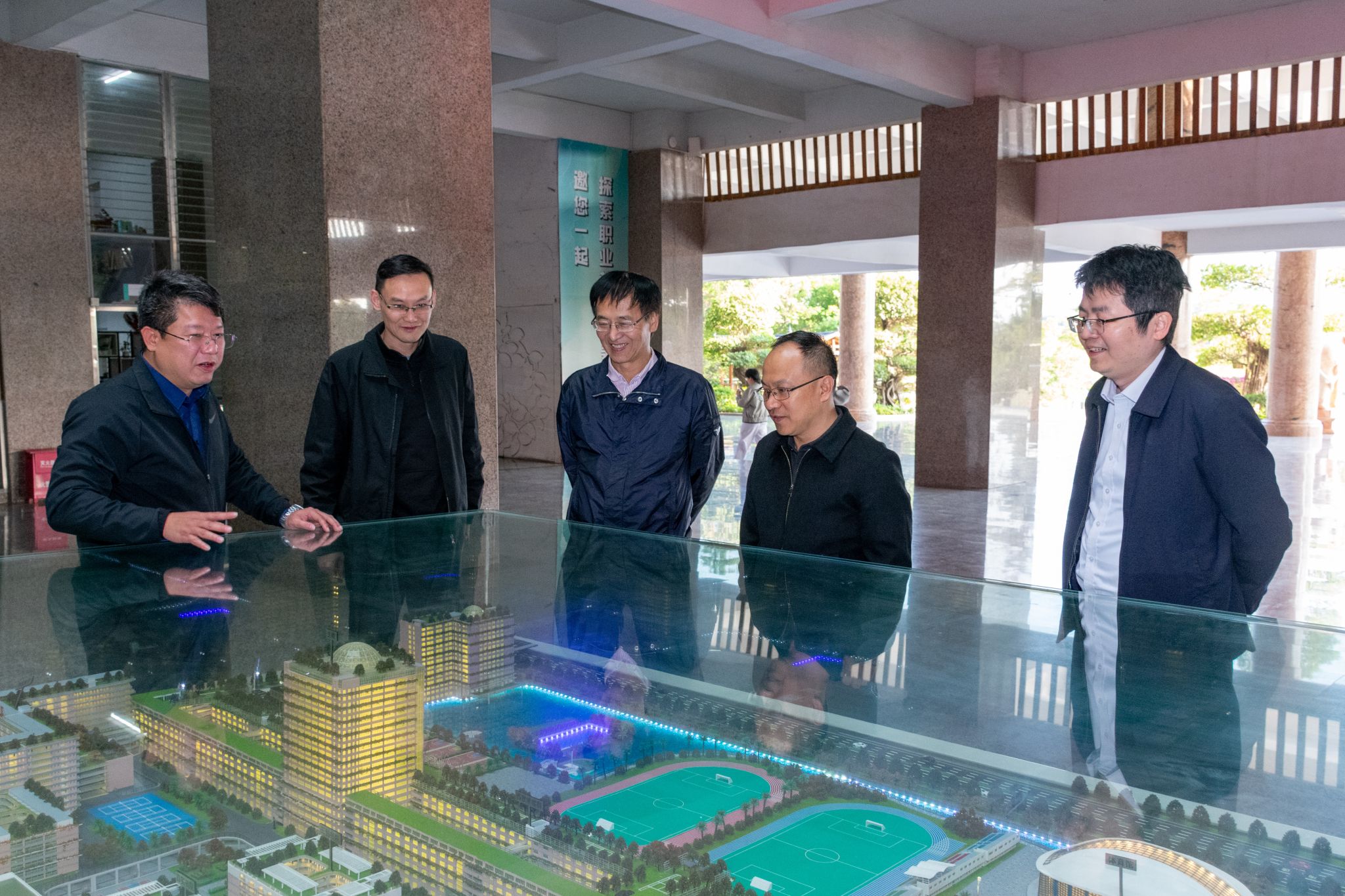 泉州市数据管理局党组成员/二级调研员施金洋、泉州市数据管理局科长邓礼靖,我校校长吴滨如、校务顾问吴建生、副校长郭霏霏陪同调研。