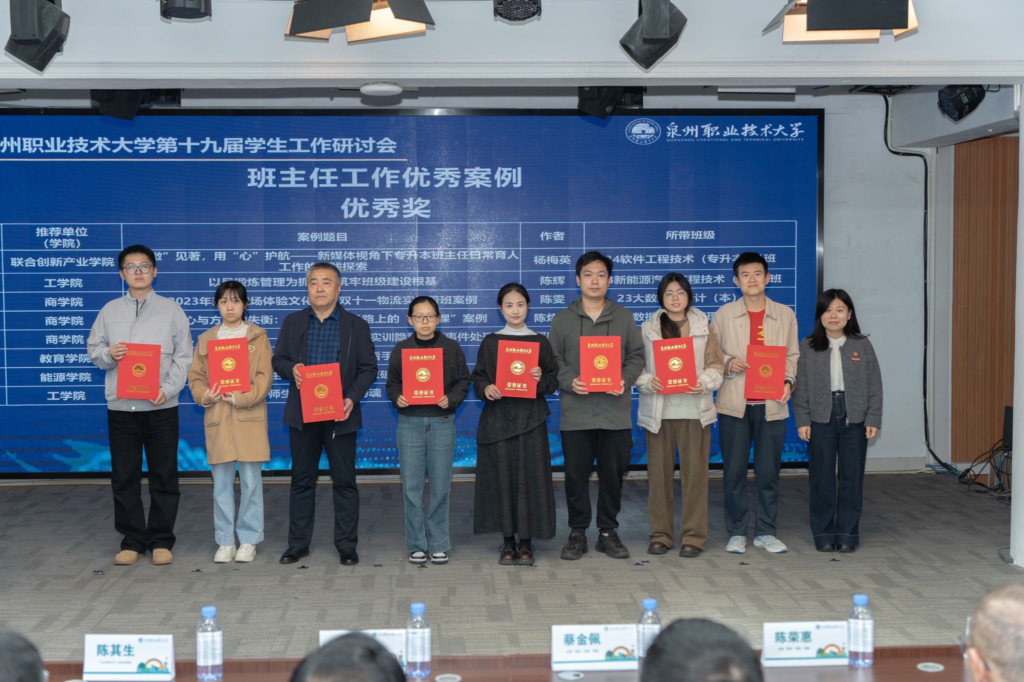 12月24日,迎来了研讨会的成果汇报及专项表彰。校党委书记傅志雄,校党委副书记、副校长蔡金佩,校工会主席陈其生,人事处、学工处、校团委负责人,各学院、书院主要负责人及全体辅导员、班主任参会。会议由学工处副处长朱冰梅主持。