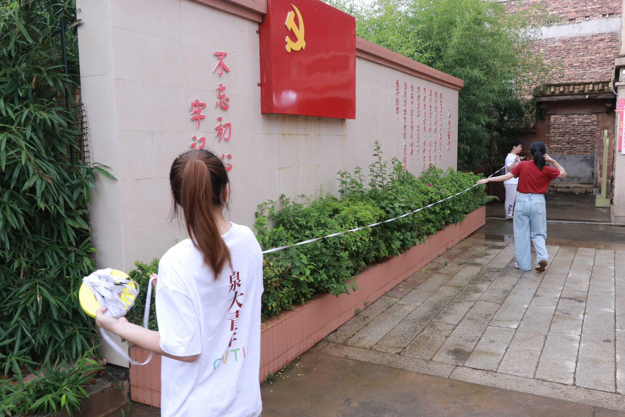▲ 实践团建筑工程专业学生在朱仁寿旧居和后溪会议会址谢氏宗祠进行测绘
