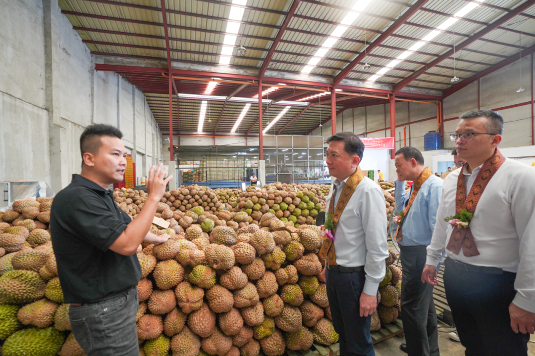 晋江市经贸交流团实地考察梅龙企业的榴莲加工厂,探讨水果采购进口等事宜。