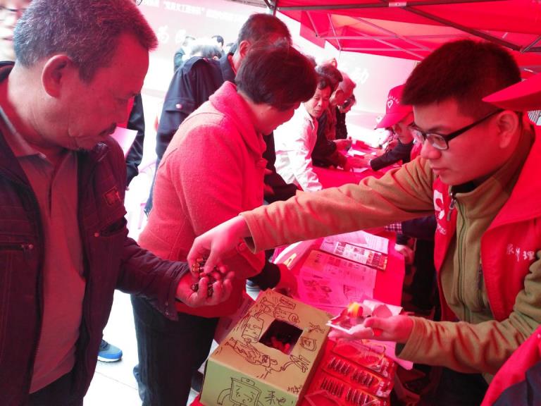 志愿者为村民置换废旧电池