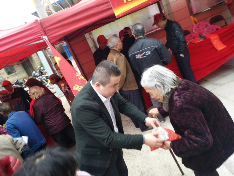 校友王颂凯为村民赠送红糖馒头