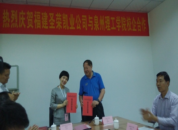 4月28日,我校车辆系与福建圣荣凯业新能源有限公司签定校企业合作协议,签约授牌仪式在泉州育城基地圣荣凯业公司隆重举行。泉州理工学院臧树良校长,庄文瑞副校长,科研处郭霏霏处长,车辆系党总支书记吴茶水,圣荣凯业吴莹董事长等出席签约仪式。